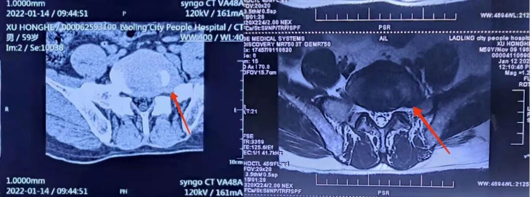 就诊于我院疼痛科后发现第5腰椎、第1骶椎椎间盘向左极外侧突出压迫腰5神经根,此种突出比较少见。经科室团队充分讨论,为患者制定了详尽的手术方案,决定为患者实施腰椎间孔镜微创手术。