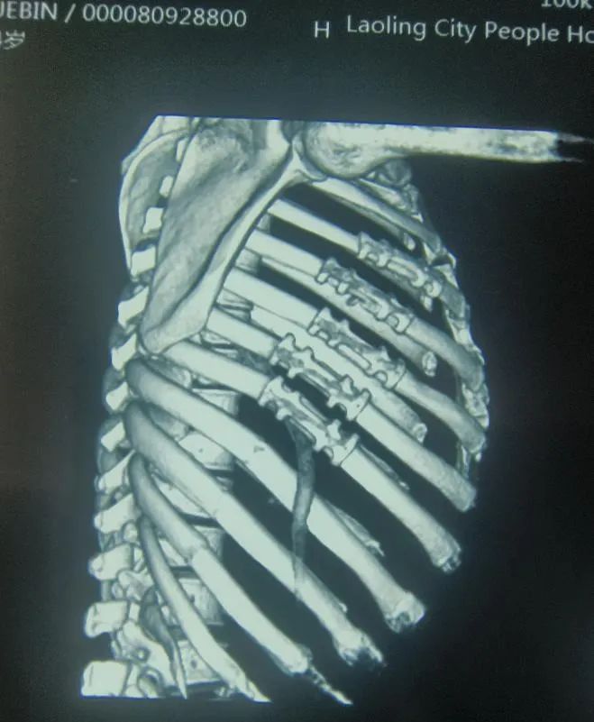 患者病情之所以如此快速的恢复,不仅是因为我院胸外科等多团队的精心合作,更是因为近年来我院胸外科多项新技术的广泛应用。在该手术中,我院胸外科采取了一项“胸腔镜探查肋骨骨折切开复位内固定术”的技术,这也是该技术引进我院以来应用的第一例,患者手术时间短,术后恢复快,非常满意。
